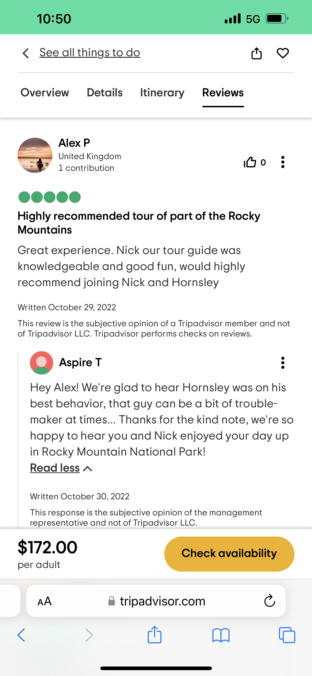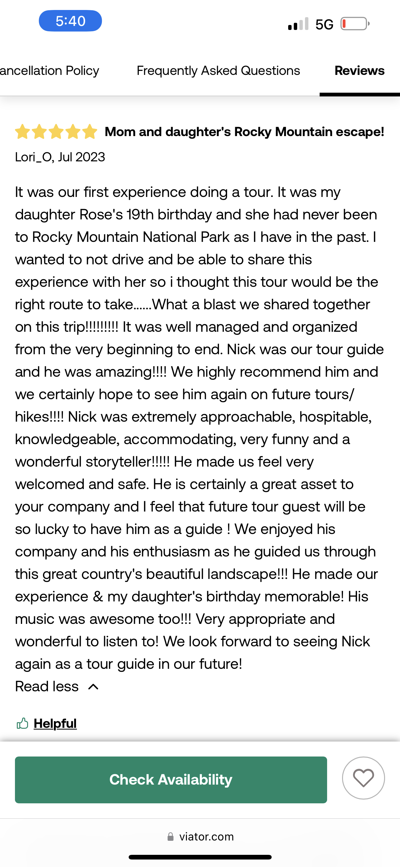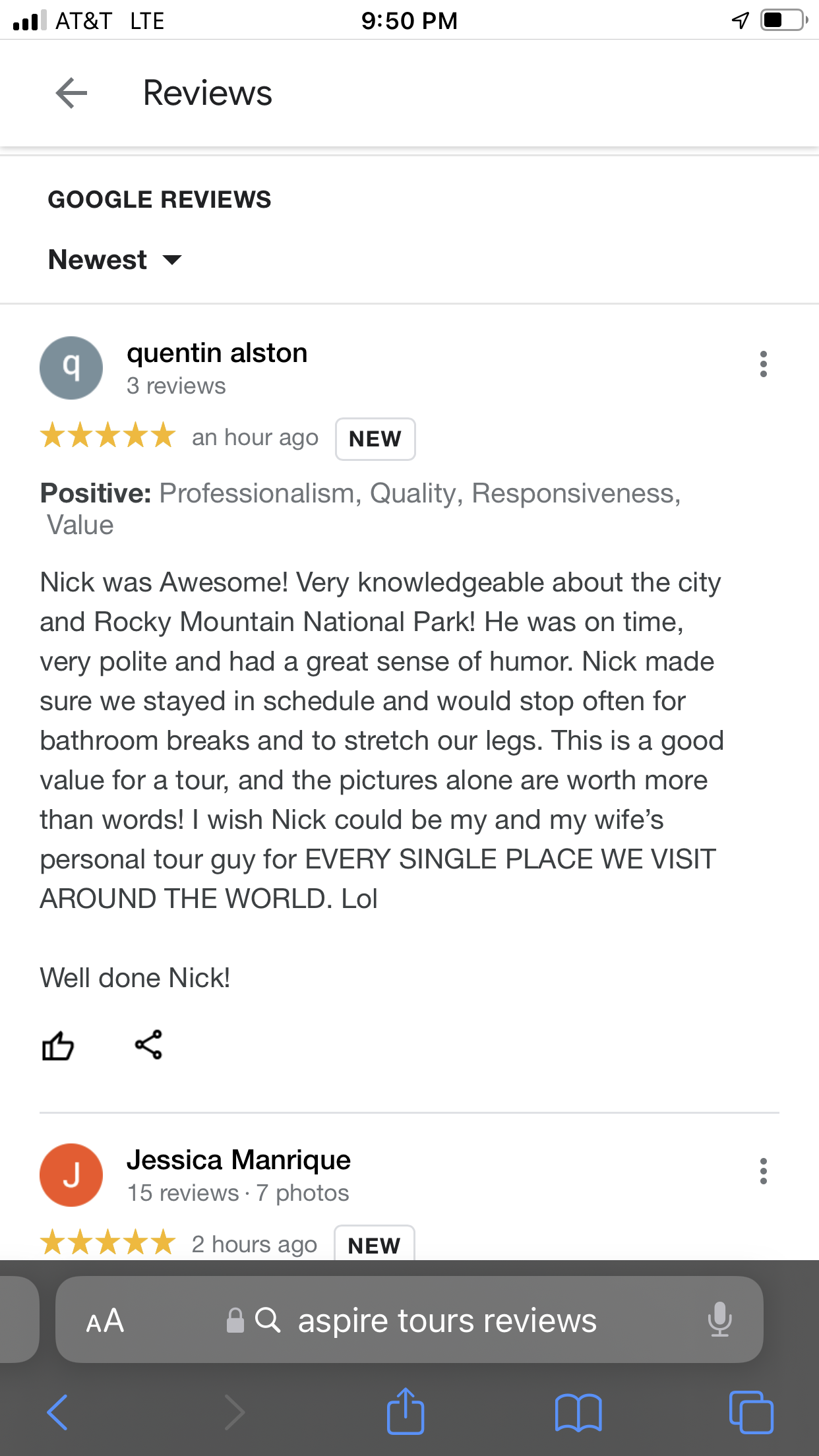As nick was finishing his degree at MSU, he found an opportunity to get into the industry that he wanted to make an impact in. He started as a Tour Guide for Aspire Tours in September, 2021. Aspire is one of the top tour providers in Colorado with their Rocky Mountain National Park Tour being their most booked tour and tons of raving online reviews for its guides. nick found himself right at home delivering unforgettable experiences to guests from around the Nation and Globe.